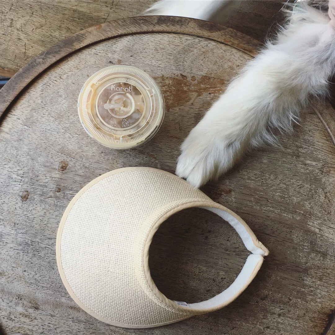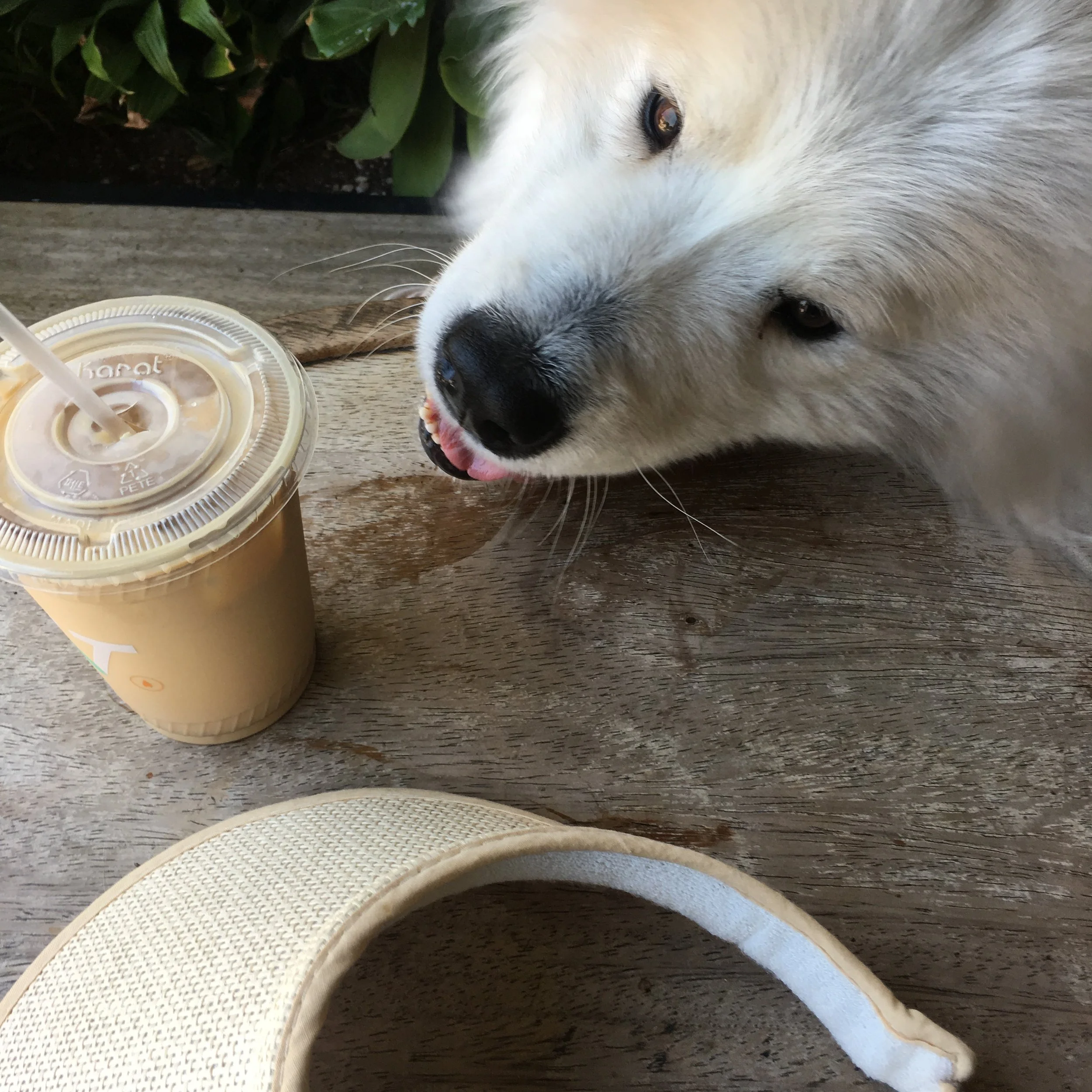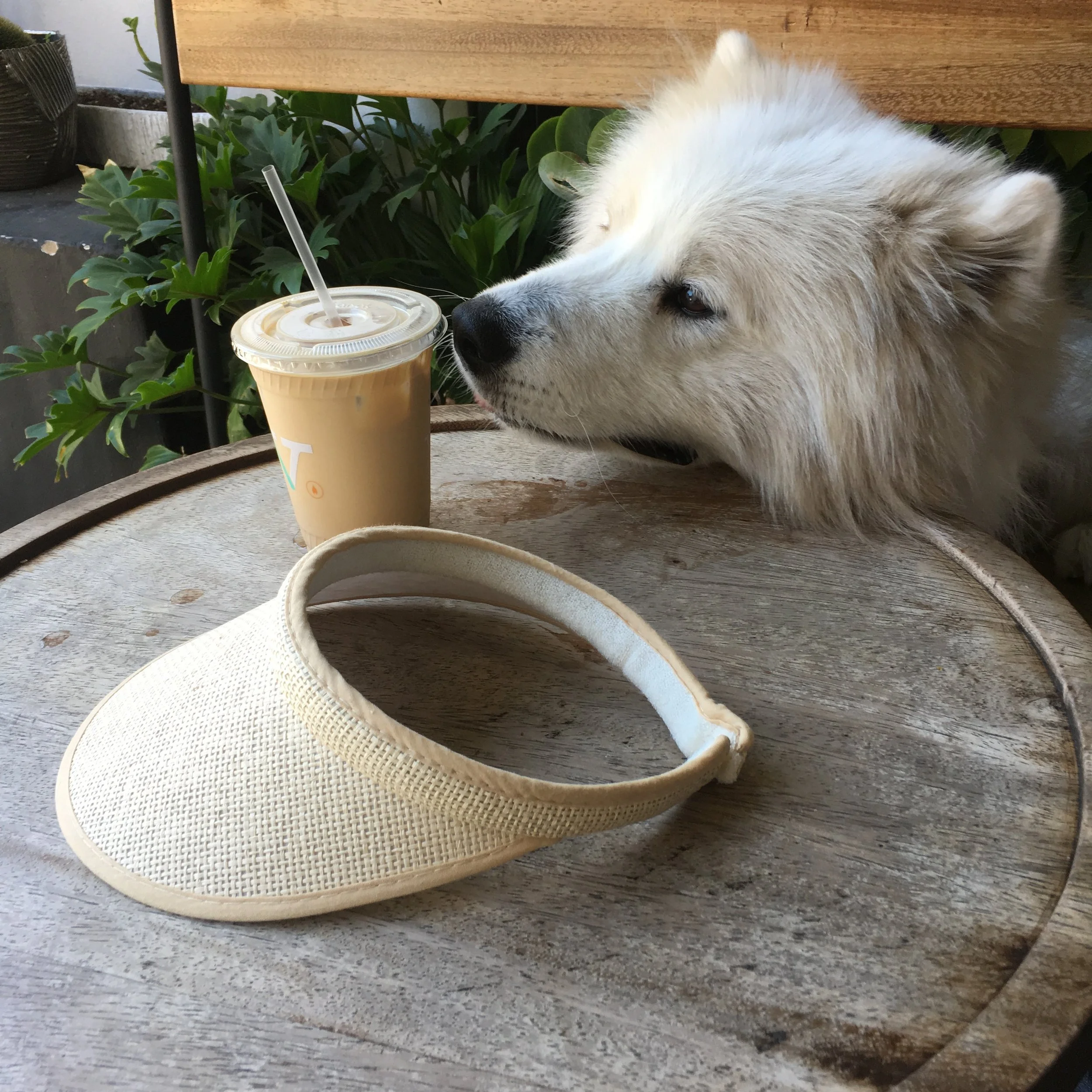 Add a couple of key components. Here, I'm really digging my coffee and my visor (not really), but apparently the color matches my fur, so my mom thought that was necessary. Considering I can't see that many colors, I don't really see the big point...
